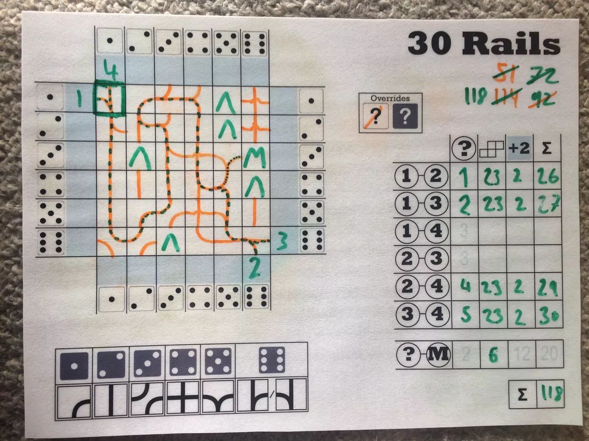 That’s 30 Rails in a nutshell. A free solo roll-and-write designed by Julian Anstey back in 2016. A decade ago!