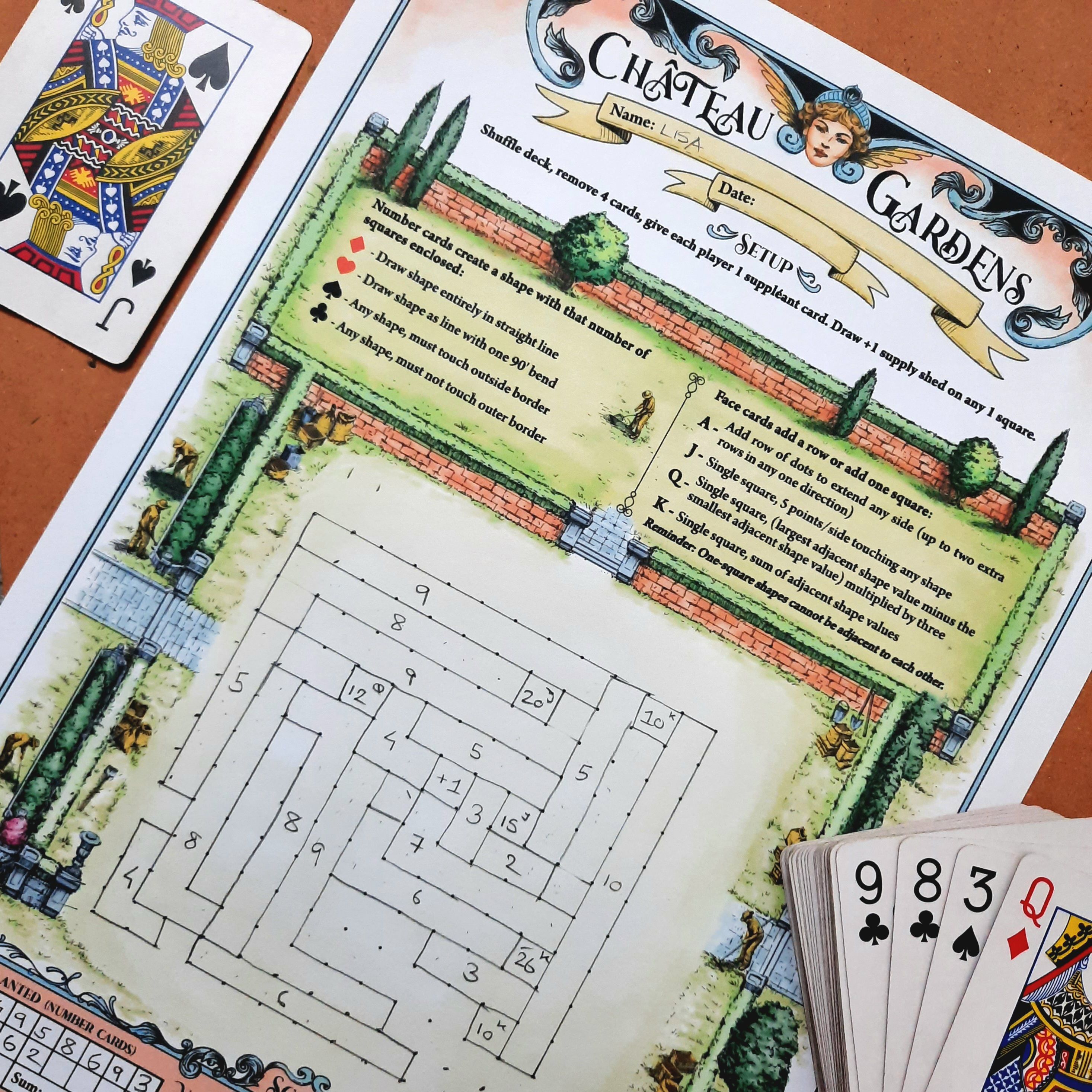 You draw polyominoes on your sheet, slowly building out a garden that needs to stay efficient, connected, and most importantly… high scoring.